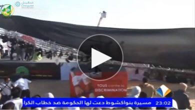 سقوط المنصة وأهم ماجاء في خطاب الرئيس وآراء بعض المشاركين في المسيرة – تقرير محمد ناجي لقناة المرابطون