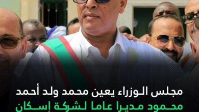 مجلس الوزراء يعين محمد ولد أحمد محمود مديرا عاما لشركة إسكان: عين مجلس الوزراء …