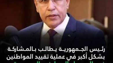 [ad_1] رئيس الجمهورية يطالب بالمشاركة بشكل أكبر في عملية تقييد المواطنين في السجل الوطني البيومتري: طالب رئيس الجمهورية محمد ولد…
