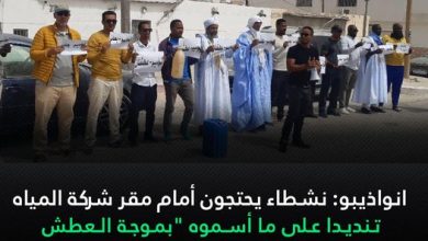 انواذيبو: نشطاء يحتجون أمام مقر شركة المياه تنديدا على ما أسموه “بموجة العطش” ا…