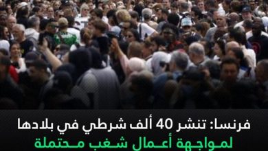 فرنسا: تنشر 40 ألف شرطي في بلادها لمواجهة أعمال شغب محتملة: كشفت الحكومة الفرنس…