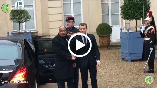 صور استقبال الرئيس الفرنسي للرئيس الموريتاني لدى وصوله لمكان اجتماع مجموعة 5 في باريس
