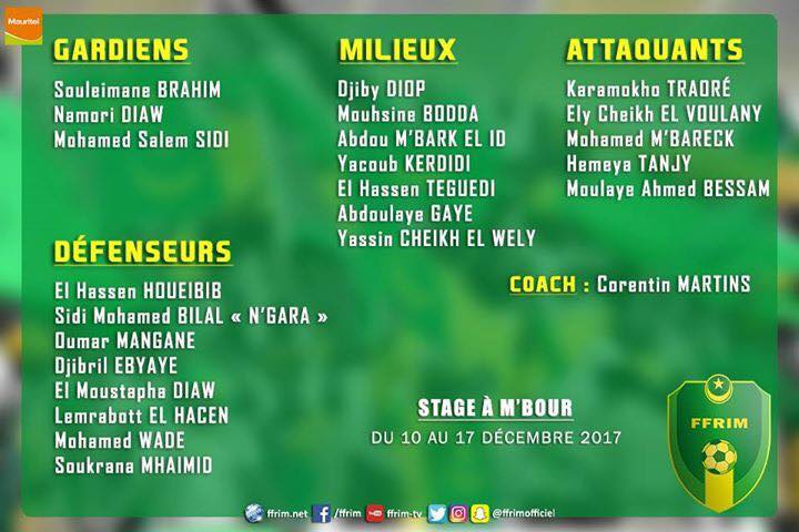 #نواكشوط – #FFRIM | أعلن الناخب الوطني كورينتان مارتينس اليوم الخميس قائمة اللاعبين المدعوين للمشاركة في معسكر تدريبي سيقيمه المنتخب…