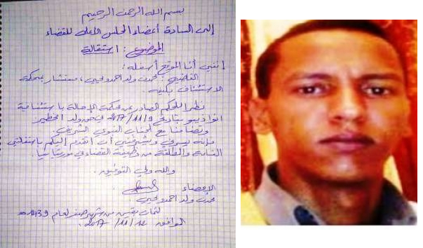 أعلن القاضي محمدن ولد أحمدو يحيى استقالته التامة والمطلقة من وظيفة القضاء في موريتانيا، وذلك “نظرا للحكم الصادر عن محكمة…