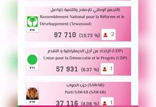 نتائج اللوائح الوطنية وتقسيم المقاعد حسب الأحزاب السياسية