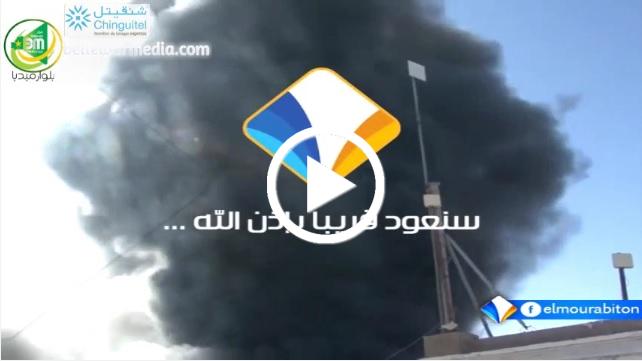 نشرة قناة المرابطون مقطع فيديو يظهر حجم الحريق الذي شب في مقرها وتعد بالعودة قريبا ان شاء الله