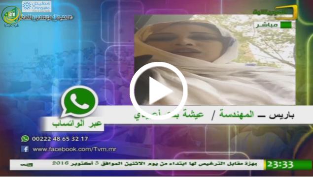 المهندسة /عيشة بنت أعبيدي عبر الواتساب من باريس – الحوار الوطني – قناة الموريتانية