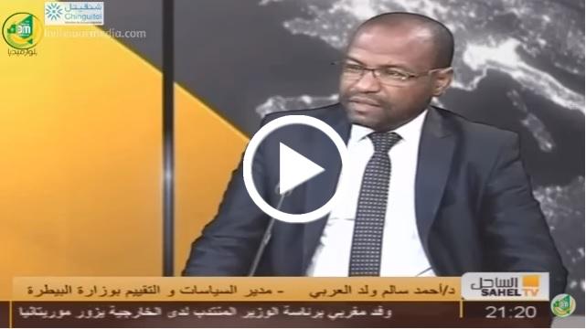 مدير السياسات والتقييم بوزارة البيطرة، د/ احمد سالم ولد العربي ضيف نشرة اخبار قناة الساحل للتعليق حملة المسح الشامل لحركة…