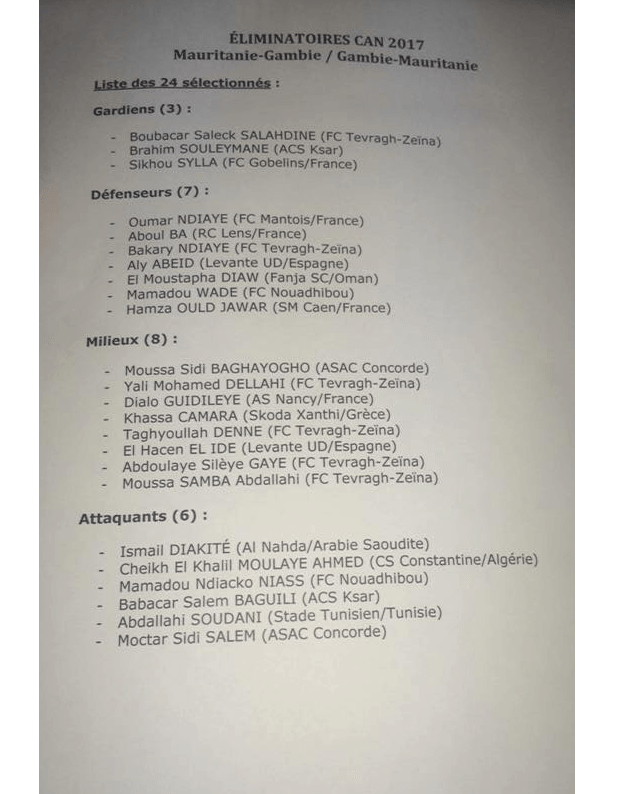 الإعلان عن القائمة الكاملة المستدعاة لمواجهتي موريتانيا وغامبيا