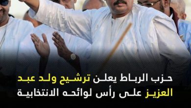 حزب الرباط يعلن ترشيح ولد عبد العزيز على رأس لوائحه الانتخابية أعلن رئيس حز…