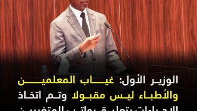 الوزير الأول: غياب المعلمين والأطباء ليس مقبولا وتم اتخاذ الإجراءات بتعليق رواتب…
