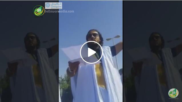 مقطع من كلمة عبد المجيد ولد بخاري ابن المرحومة خدوج عند بوابة القصر رئاسي مصدر الفيديو:Ballahi Aziz
