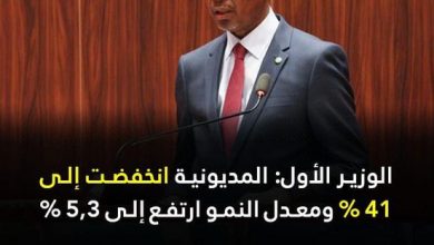 الوزير الأول: المديونية انخفضت إلى 41 % ومعدل النمو ارتفع إلى 5,3 % قال الوزير …