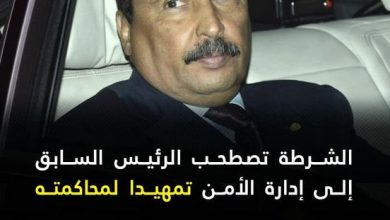 [ad_1] الشرطة تصطحب الرئيس السابق إلى إدارة الأمن تمهيدا لمحاكمته استدعت الشرطة الرئيس السابق محمد ولد عبد العزيز ورفاقه المشمولين…