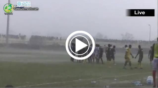 توقيف مبارة المرابطون ضد جنوب السودان بعد اقل من ربع ساعة بسبب الامطار الغزيرة في استاد جوبا بجنوب السودان بيكلي…