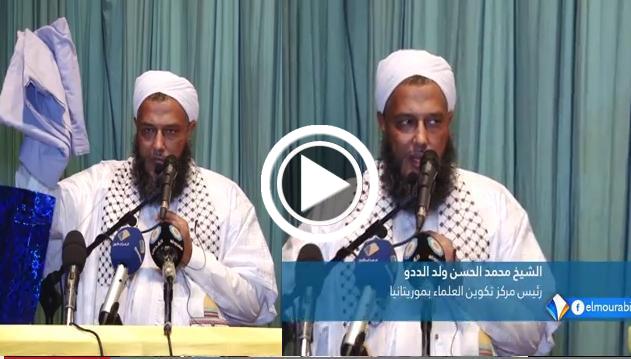 الشيخ الددو يعرض عمامة الشيخ عدود في مزاد علني على هامش ملتقى القدس بنواكشوط. قناة المرابطون.