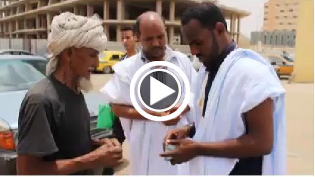 مقطع فيديو يوثق عملية تسليم حصيلة تبرعات لشيخ طاعن في السن يغسل السيارات قرب “افاركو” حلمة 100 اوقية كل يوم…