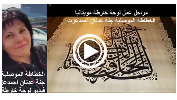 الخطاطة الموصلية جنة عدنان احمدعزت في عمل لوحة خارطة موريتانيا