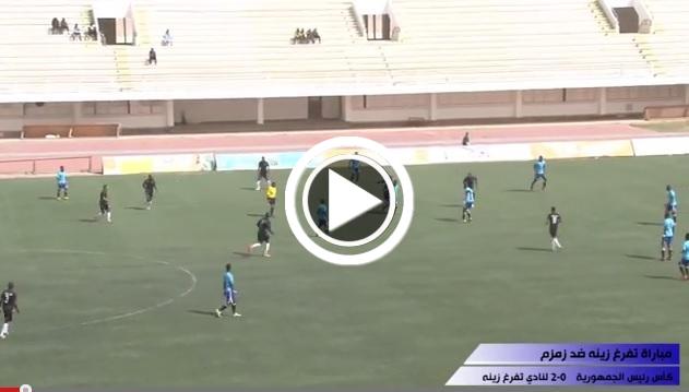 فوز نادي تفرغ زينه على نادي زمزم بهدفين لصفر وذالك صمن فعاليات كأس الرئيس اللتي انطلقت 21-02-2015 بالملعب الأولمبي