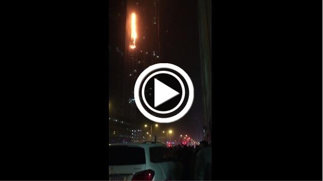 اندلاع حريق في ناطحة سحاب برج الشعلة في دبي 20/02/2015