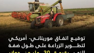 [ad_1] توقيع اتفاق موريتاني- أمريكي لتطوير الزراعة على طول ضفة النهر بقيمة 30 مليون دولار وقع وزير الشؤون الاقتصادية أوسمان…