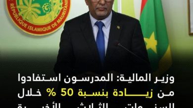 [ad_1] وزير المالية: المدرسون استفادوا من زيادة بنسبة 50 % خلال السنوات الثلاث الأخيرة قال وزير المالية، اسلمو ولد محمد…