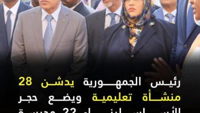 [ad_1] رئيس الجمهورية يدشن 28 منشأة تعليمية ويضع حجر الأساس لبناء 22 مدرسة ابتدائية أشرف رئيس الجمهورية محمد ولد الشيخ…