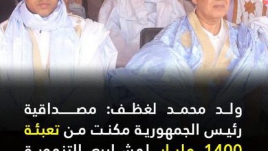 [ad_1] ولد محمد لغظف: مصـداقية رئيس الجمهورية مكنت من تعبئة 1400 مليار لمشاريع التنموية قال الوزير الأمين العام لرئاسة الجمهورية…