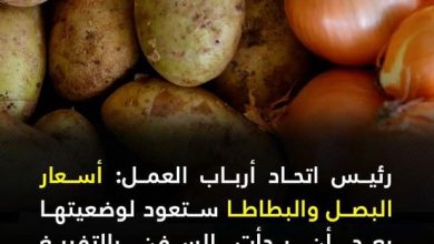 [ad_1] رئيس اتحاد أرباب العمل: أسعار البصل والبطاطا ستعود لوضعيتها بعد أن بدأت السفن بالتفريغ أرجع رئيس اتحاد أرباب العمل…