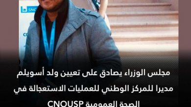 [ad_1] صادق مجلس الوزراء اليوم على تعيين الطبيب العسكري محمد بوي ولد اسويلم مديرا للمركز الوطني للعمليات الاستعجالة في الصحة…