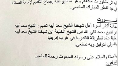 الخلافة العامة للطريقة القادرية في غرب إفريقيا بيان ؛ يطيب لنا في هذا …