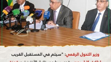 [ad_1] قال وزير التحول الرقمي والابتكار وعصرنة الإدارة الشيخ الكبير ولد مولاي الطاهر ،إنه سيتم في المستقبل القريب إطلاق كابل…