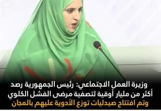 [ad_1] وزيرة العمل الاجتماعي: رئيس الجمهورية رصد أكثر من مليار أوقية لتصفية مرضى الفشل الكلوي، وتم افتتاح صيدليات توزع الأدوية…