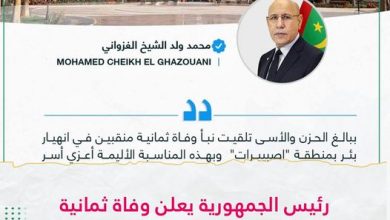 [ad_1] رئيس الجمهورية: ببالغ الحزن والأسى تلقيت نبأ وفاة ثمانية منقبين في انهيار بئر بمنطقة “اصبيبرات” وبهذه المناسبة الأليمة أعزي…