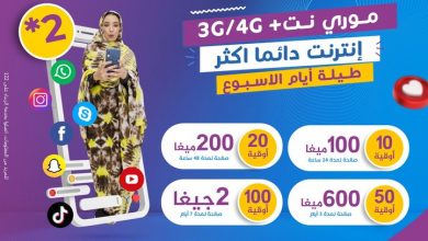 [ad_1] إستمتع بالإنترنت طيلة أيام الأسبوع مع باقات موري نت+ الداعمة لل 3G و 4G لتفعيل الباقة إضغط على *2#…