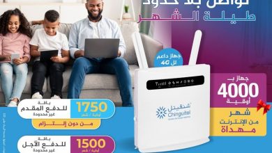 [ad_1] جديد من شنقيتل: حلول إنترنت للمنازل والمؤسسات داعمة لشبكة ال4G وال3G، جهاز راوتر Flybox بـ 4000 أوقية مع شهر…