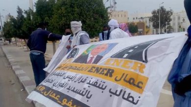 العمال أنير المفصولون تعسفيا ينظمون وقفة احتجاجية أمام البرلمان، اثناء مثول الو…