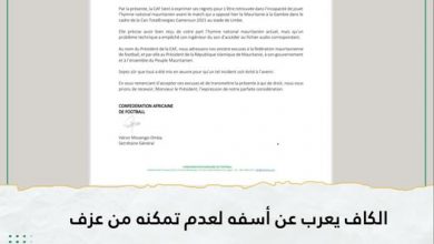 [ad_1] الكاف يعتذر لموريتانيا عن عدم عزف النشيد الوطني أمس أمام غامبيا نص الاعتذار: الموضوع: النشيد الموريتاني خلال مباراة 12…
