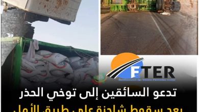مؤسسة أشغال صيانة الطرق تدعو السائقين إلى توخي الحذر بعد سقوط شاحنة على طريق الأمل : ÉTER: أدى سقوط شاحنة…