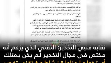 نقابة فنيي التخدير: التقني الذي يزعم أنه مختص في مجال التخدير لم يكن يمتلك أي شهادة تخوله لمزاولة نشاطه كتقني تخدير: