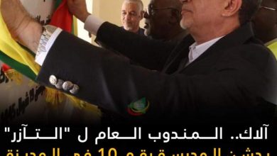 دشن المندوب العام للتضامن الوطني ومكافحة الاقصاء حمود ولد امحمد اليوم الأحد المدرسة رقم 10 في مدينة ألاك التي مولتها…