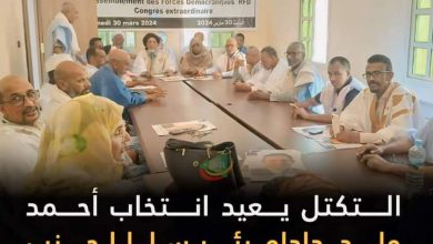 التكتل يعيد انتخاب أحمد ولد داداه رئيسا للحزب أعاد حزب تكتل القوى الديمقراطية، اليوم الإثنين، خلال مداولات مؤتمره الاستثنائي، انتخاب…
