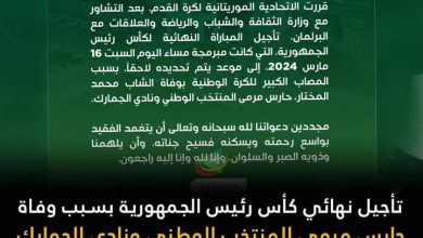 الاتحادية الوطنية لكرة القدم تنعي حارس المنتخب الوطني : #تعزية بقلوب يعتصرها الحزن والأسى؛ تنعي الاتحادية الموريتانية لكرة القدم حارس…