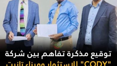 توقيع مذكرة تفاهم بين شركة “CODY” للاستثمار وميناء تانيت