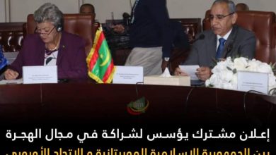 إعلان مشترك يؤسس لشراكة في مجال الهجرة بين الجمهورية الإسلامية الموريتانية و الاتحاد الأوروبي: 1. انشغالا منهما بالسياق الإقليمي، الذي…