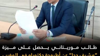 طالب موريتاني يحصل على ميزة “مشرف جدا” عن أطروحة دكتوراه بالمغرب