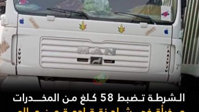 الشرطة تضبط 58 كلغ من المخدرات مخبأة في شاحنة مخدرات قادمة من مالي
