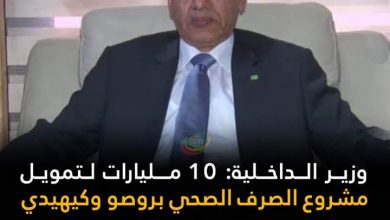 وزير الداخلية: 10 مليارات أوقية لتمويل مشروع الصرف الصحي بروصو وكيهيدي
