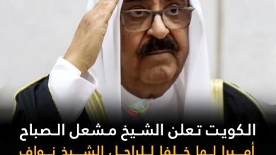الكويت تعلن الشيخ مشعل الصباح أميرا لها خلفا للراحل الشيخ نواف