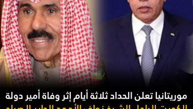 موريتانيا تعلن الحداد ثلاثة أيام إثر وفاة أمير دولة الكويت الراحل الشيخ نواف الأحمد الجابر الصباح: أعلنت موريتانيا في مرسوم…